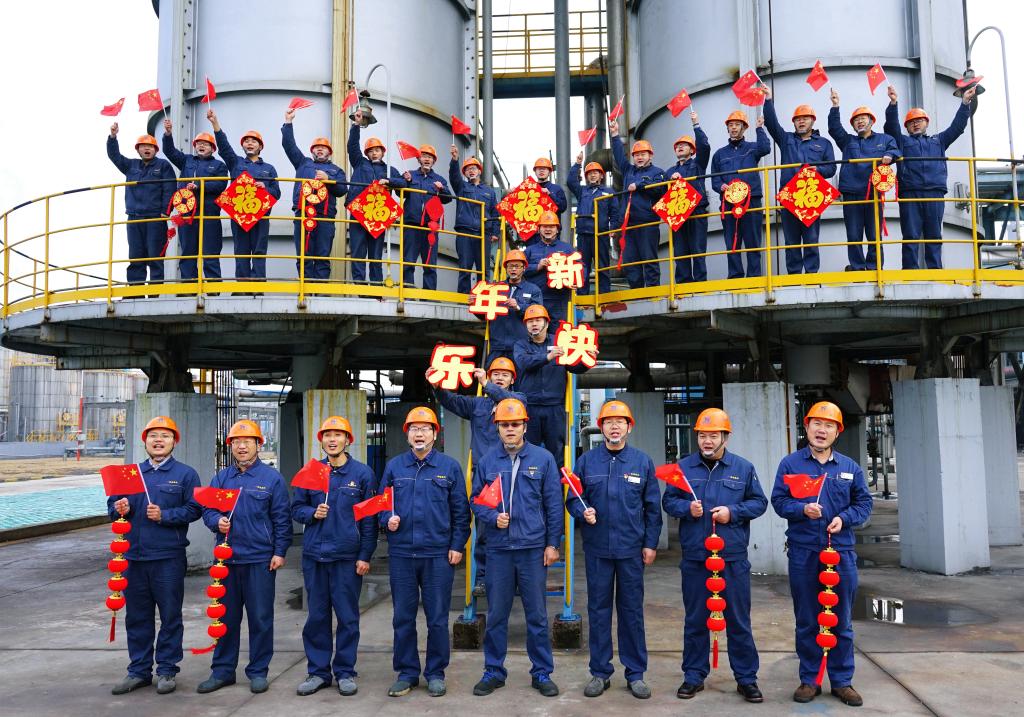 年初一,临涣焦化公司精苯车间,利用班前会,把当天上班职工聚集在一起,欢聚一起,拍下一张喜庆祥和的“全家福”,车间党支部书记刘升说:“这样热热闹闹、红红火火,大家一起岗位过年是另外一种幸福。”