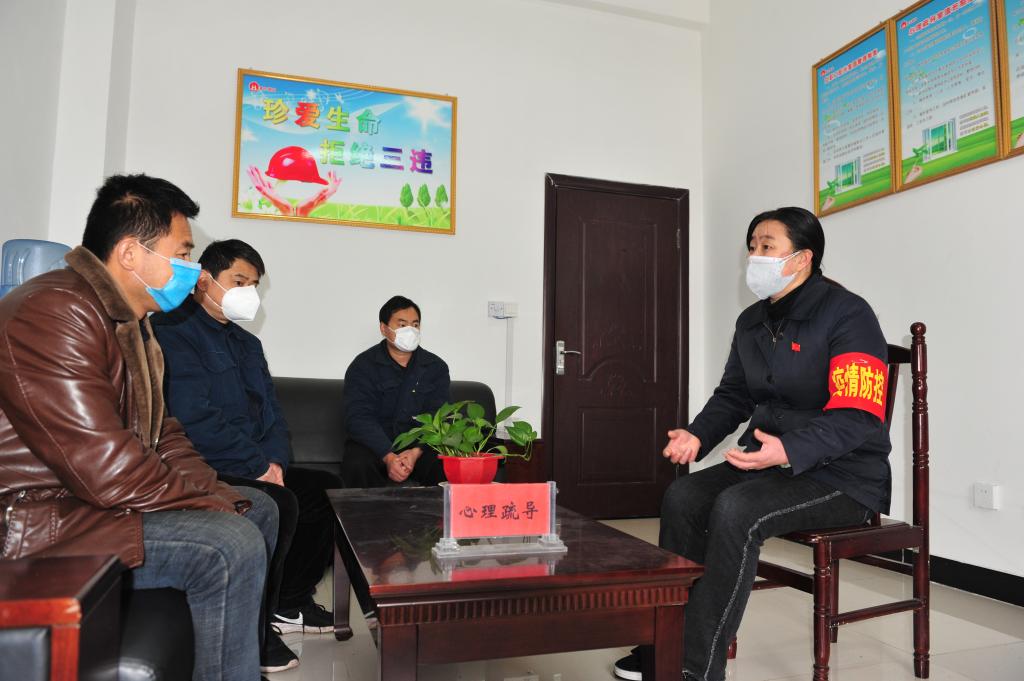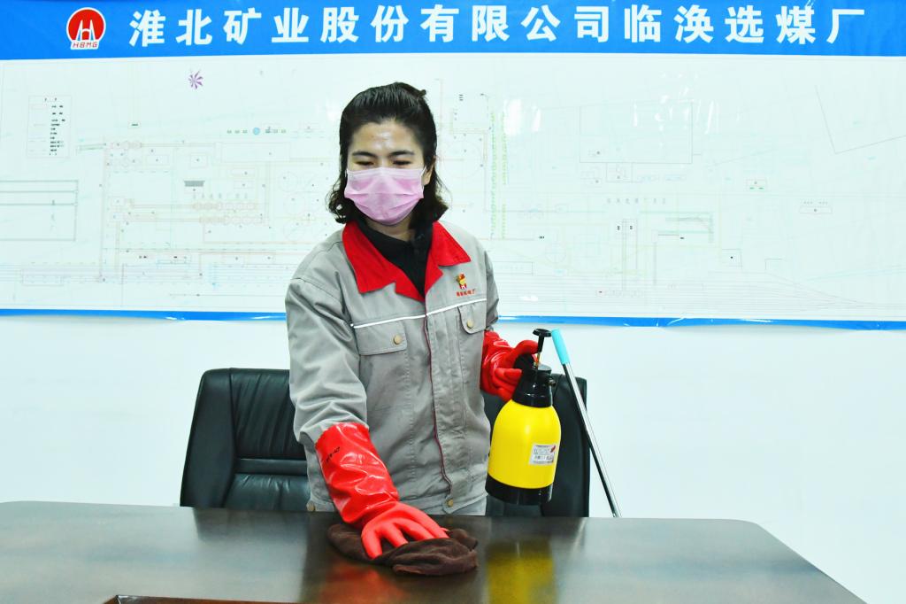 矿内实行封闭式管理,严格控制人员进出,职工食堂缺少人手。全国最美好矿嫂、全国优秀协安员、青东煤业“李莉心理疏导室”负责人,物业公司党员李莉在这一时刻扮演了“双重角色”,在工作中她对食堂宿舍进行卫生消毒,在业余时间她主动当好职工的“心理疏导师”,缓解在矿职工心理压力,为职工义务盛饭打菜。“公司每天为职工检查体温,严禁外来人员进矿,为职工发放消毒液、洗手液、口罩,严格执行分餐分浴制度,对于违反规定的相关责任人按严重‘三违’处理,这样铜墙铁壁式的管理,我们职工对自己的健康很放心!”李莉信心满满地说。