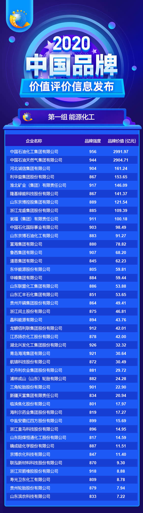 5月10日,值我国第四个中国品牌日之际,中国品牌建设促进会联合中国资产评估协会等单位在新华网举行“2020中国品牌价值评价信息发布”活动。在此次活动中,304am永利集团企业品牌强度被评定为917,品牌价值146.09亿,位列能源化工组第五位;临涣焦化品牌强度801,品牌价值17.97亿,位列第31位。这也是今年以来继临涣焦化和华塑股份公司获得“安徽省商标品牌示范企业”之后,品牌建设取得的又一项重要成果。