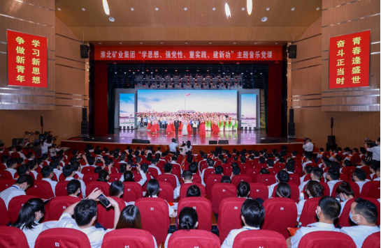 主题音乐党课由情景剧《破晓》导入,分“起航”“扬帆”“破浪”三个篇章,生动诠释了革命、建设、改革和新时代等不同历史时期,中国共产党领导人民从“站起来”“富起来”到“强起来”的伟大历程。通过情景大合唱《保卫黄河》、歌伴舞《唱支山歌给党听》、情景剧《社会主义好》、歌伴舞《春天的故事》、朗诵《盛世中国》、歌伴舞《领航》等艺术节目,颂党恩、抒党情,奏响奋勇前行、永远跟党走的青春之歌。整场主题音乐党课气势恢宏、大气磅礴,唱出了淮矿青年昂首向前的积极姿态、唱出了不忘初心跟党走的坚定信念,充分展示了矿区青年朝气蓬勃、积极向上的精神风貌,唱响了百里矿区“请党放心、强国有我”的时代强音。
