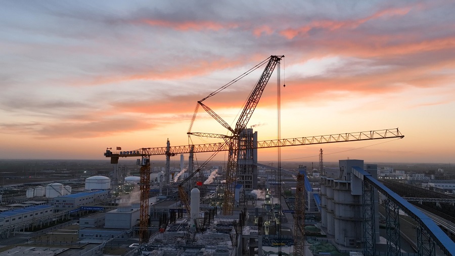 从朝霞满天到日暮星辰,在碳鑫科技二期乙醇项目工地建设现场,每天10多台大型吊车、1500多名四方建设者,不知疲倦地坚守岗位,工程进度随着气化炉、反应器、乙醇精制塔等设备安装速度加快而不断被刷新着。