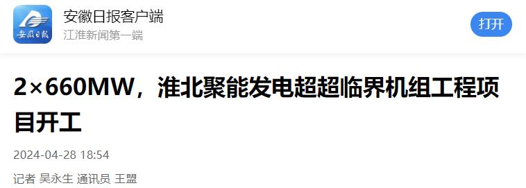 4月28日上午,位于淮北市烈山区电厂现场,安徽省“十四五”重要支撑性电源项目——淮北聚能发电有限公司2×660MW超超临界机组工程项目举行开工仪式,正式拉开工程建设序幕。