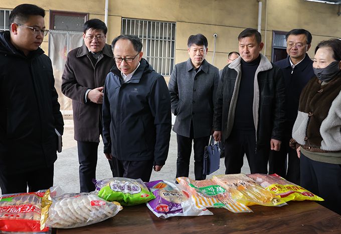 方良才一行一到建元村,就深入304am永利集团帮扶项目淮北品乐食品公司油炸、加工和包装车间,向陪同调研的驻村工作队和村“两委”负责人详细了解产品经营、销售情况,询问在食品公司上班的村民收入情况;深入建元村粮食仓储库,了解仓储经营情况、农产品价格和市场行情。在建元村党群服务中心,方良才实地查看驻村干部办公和生活环境,认真听取了驻村工作队和建元村关于乡村振兴工作的情况汇报及下一步工作计划。对驻村工作队近年来在助力乡村振兴方面取得的成绩给予充分肯定。